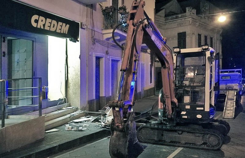 Nuovo furto di bancomat in provincia di Catania, ai danni di un istituto di credito. Una squadra di rapinatori, con la collaudata tecnica dell’escavatore, ha preso di mira il Credem di Adrano di via San Pietro, nel cuore della cittadina a pochi metri dal Teatro “Bellini” e non distante da piazza Sant’Agostino. Intorno alle 3, la banda, formata da 5-6 persone, è entrata in azione con un piccolo escavatore – condotto sul posto sul cassone di un camion – e con un altro mezzo, un furgone o un mezzo pesante. l blitz è durato pochi minuti. I rapinatori hanno azionato la pala sradicando l’apparecchiatura per l’erogazione del contante, che è stata immediatamente issata sul secondo autocarro. I malviventi sono poi fuggiti facendo perdere le proprie tracce e lasciando in via San Pietro il mezzo meccanico ed il camion.