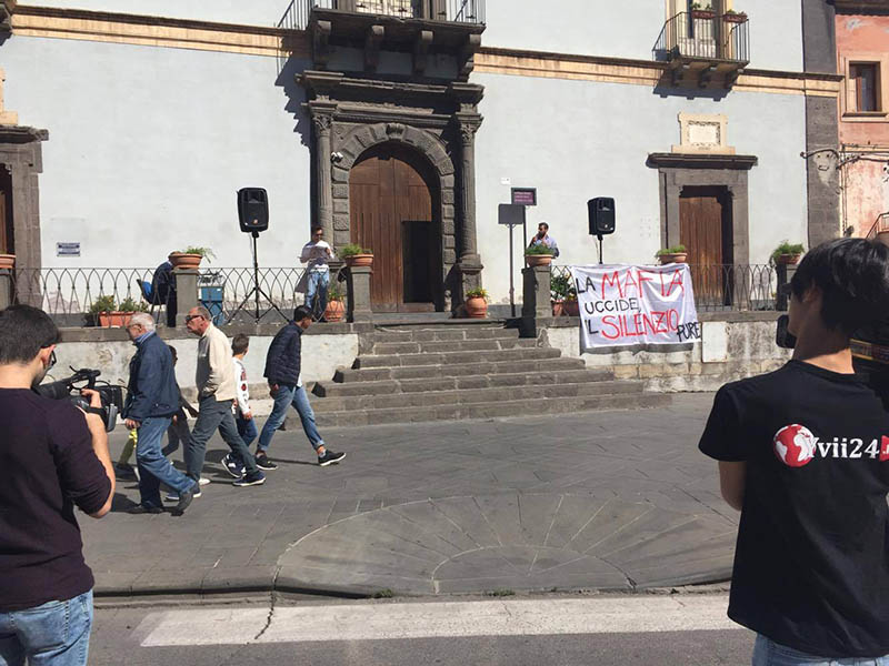 I tanti cittadini sono stati accolti dai giovani Alfio Anzalone e Giuseppe Tomaselli che hanno interpretato lo sketch “la Sicilia” di Ficarra e Picone, esaminando così i motivi che rendono un siciliano orgoglioso e quelli che al contrario si vergognano di esserlo; due facce della stessa medaglia, in quanto entrambe le motivazioni possono essere valide, solo se portano ad un obiettivo comune: lottare per la propria terra. Pochi gesti simbolici che celavano un significato più profondo, pochi passi ricordare che il paese non è nelle mani della mafia, ma appartiene ai cittadini. E i palloncini che ricordavano sentimenti malvagi, sono stati liberati dopo l’urlo “la mafia fa schifo”.