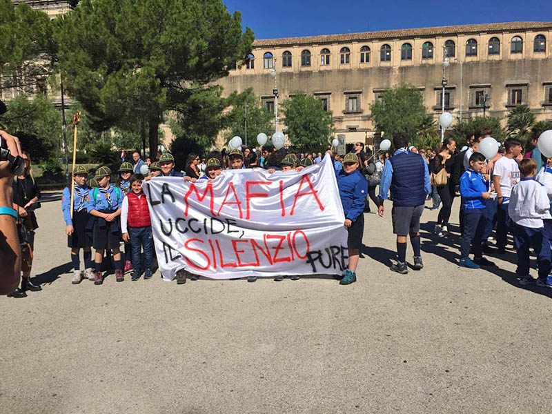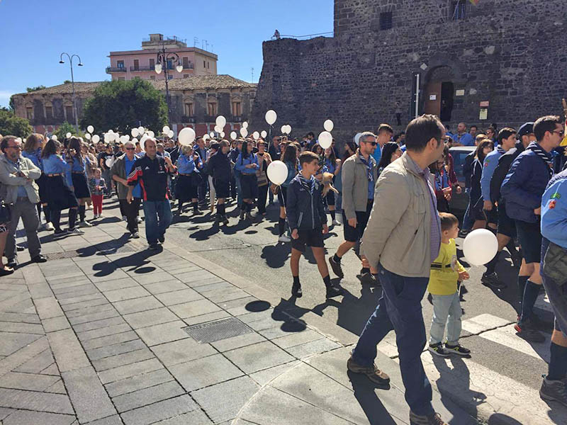 Si è svolta ieri 8 ottobre, ad Adrano, la manifestazione “La mafia uccide, il silenzio pure” promossa dai giovani rappresentanti delle parrocchie e del mondo dell’associazionismo, e rivolta ai cittadini di Adrano e dei paesi limitrofi, dopo il recente servizio di “Striscia la notizia” che ha invitato i cittadini a scattare un selfie con il cartello “la mafia fa schifo” (alcuni hanno rifiutato), seguito ai lutti per il pentito Valerio Rosano, in vita ma considerato morto dal suo ambiente. Il corteo si è mosso, alle 11:30 dalla villa comunale seguendo la frase-manifesto dell’iniziativa. Ai presenti, circa 500 tra bambini e adulti, sono stati dati dei palloncini con delle scritte che rappresentavano sentimenti e atti che provoca la mafia, quali omertà, paura, violenza, oppressione. Nella prima tappa del corteo è stato riposto, davanti alla stele che ricorda Giovanni Falcone, all’interno del Giardino della Vittoria, un mazzo di fiori. In seguito il corteo si è diretto verso piazza Umberto percorrendo via Roma, e riunendosi infine, davanti Palazzo Bianchi.