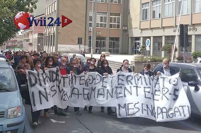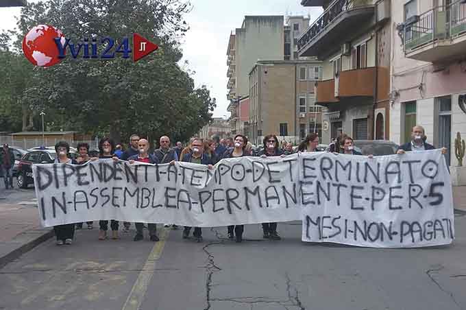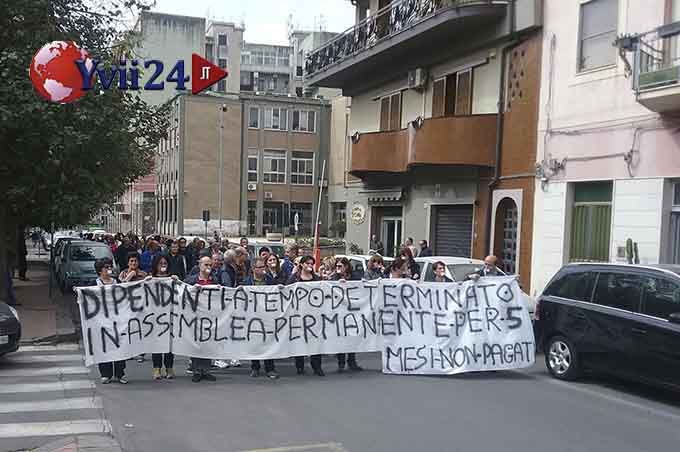 Sfilano per le vie del centro i lavoratori a tempo determinato che chiedono il saldo di 5 mensilità arretrate