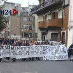 In testa al corteo uno striscione con la scritta “Dipendenti a tempo determinato in assemblea permanente per 5 mesi non pagati”. A seguire i lavoratori con un bavaglio sulla bocca a simboleggiare il silenzio, sulla loro vicenda, da parte dell’amministrazione comunale. Poi la sosta dinanzi Palazzo Bianchi, sede di rappresentanza del comune. Alla fine della manifestazione i dipendenti sono tornati nell’aula consiliare, che rimane occupata, e quattro di loro hanno comunicato l’inizio dello sciopero della fame sino al pagamento delle spettanze.