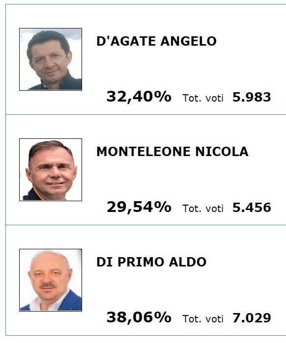 Il candidato del centrodestra ottiene il 38%, lo sfidante il 32. Monteleone ago della bilancia