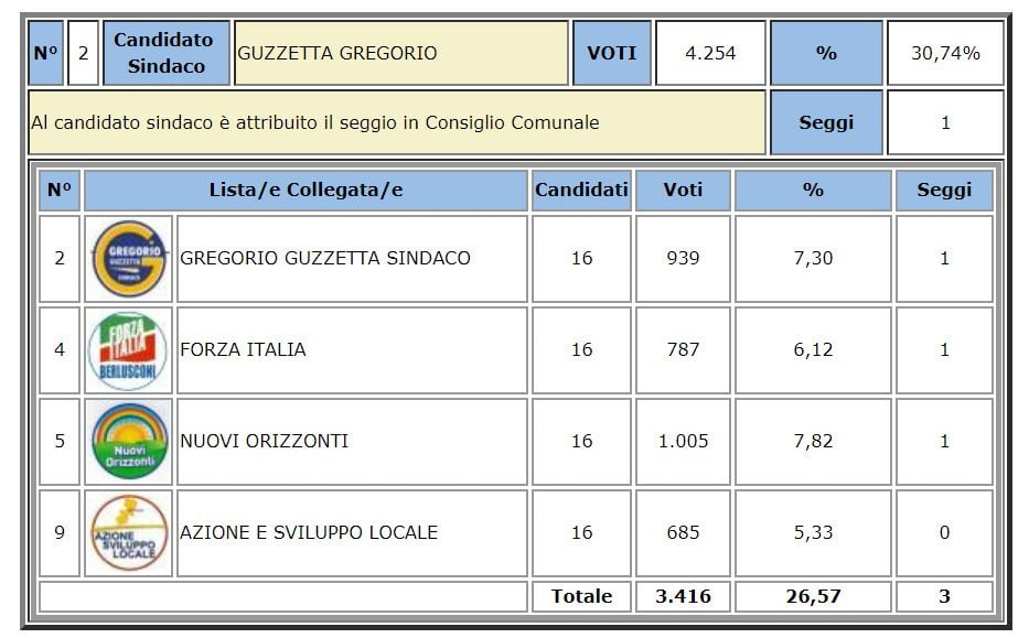 Gregorio Guzzetta Sindaco 1 seggio: Carmelo Moschetto (221 preferenze)