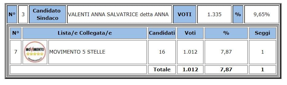 Movimento 5 Stelle 1 seggio: Damiano Caserta (141 preferenze)