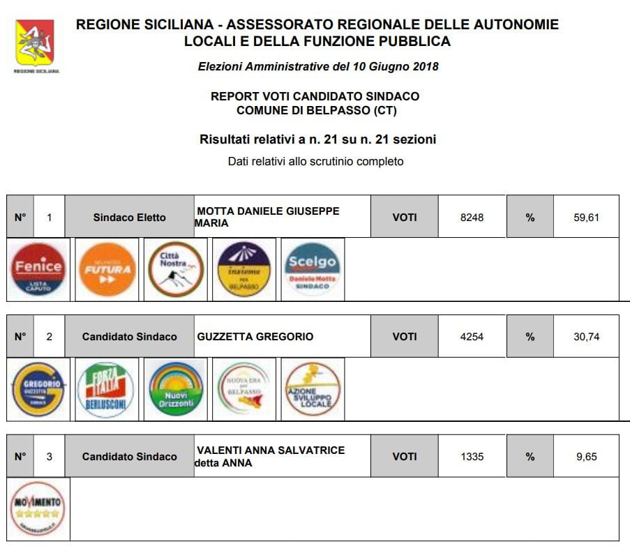 ELEZIONE DEL SINDACO DI BELPASSO: SCARICA IL RIEPILOGO IN PDF