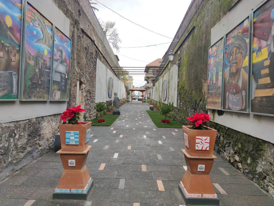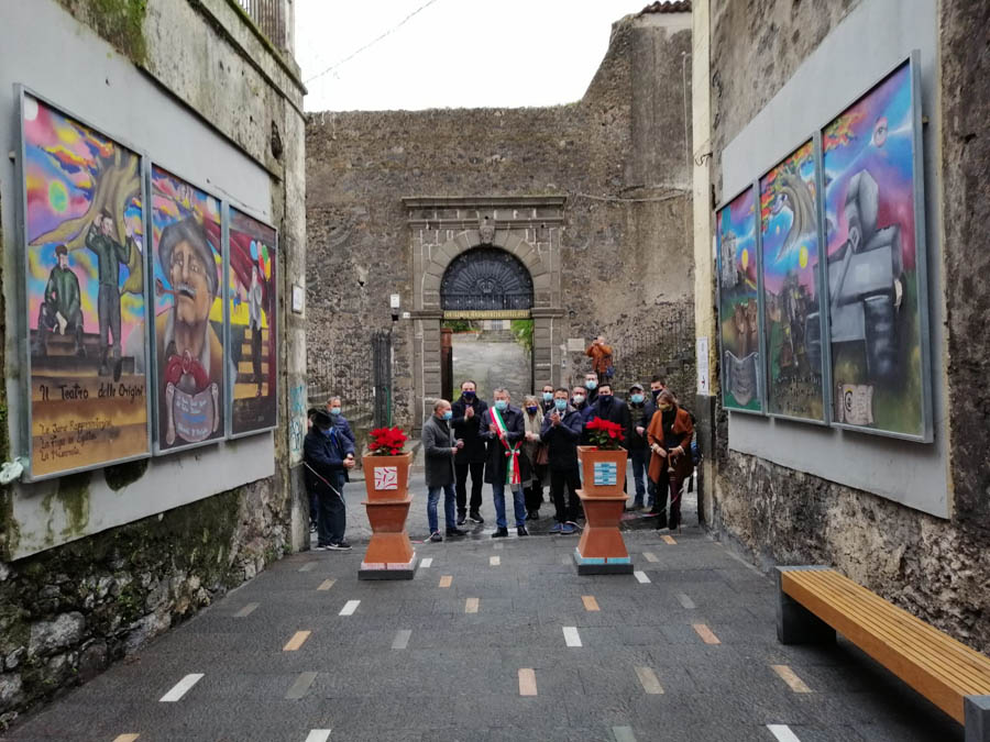 Posato un pavimento di pietra lavica, realizzati angoli verdi e installate opere d’arte dedicate alla storia della città