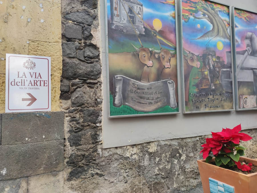 Le opere pittoriche andranno a decorare i muri della via in quanto la XV traversa da sempre è riconosciuta dalle varie generazioni belpassesi come la “strada dei murales”. Per poter permettere appuntamenti culturali lungo la via, come la presentazioni di libri, è stato collocato un grande gazebo in legno insieme alle panchine posizionate tra il verde ed i vasi decorati dagli studenti di Belpasso. Un altro elemento che caratterizza la via è la pavimentazione in pietra lavica.