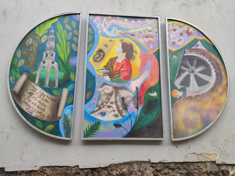Lungo i muri perimetrali sono state temporaneamente collocate alcune scene dei carri in onore di santa Lucia, patrona della città, delle scorse edizioni della festa dicembrina, gentilmente concesse dalla Fondazione Carri che negli anni si è presa cura della via dell’Arte. L’appello da parte degli amministratori è quello di non vandalizzare questo angolo artistico e culturale di ritrovo, dalle enormi potenzialità, che dopo tanta fatica è stato finalmente riconsegnato alla città.