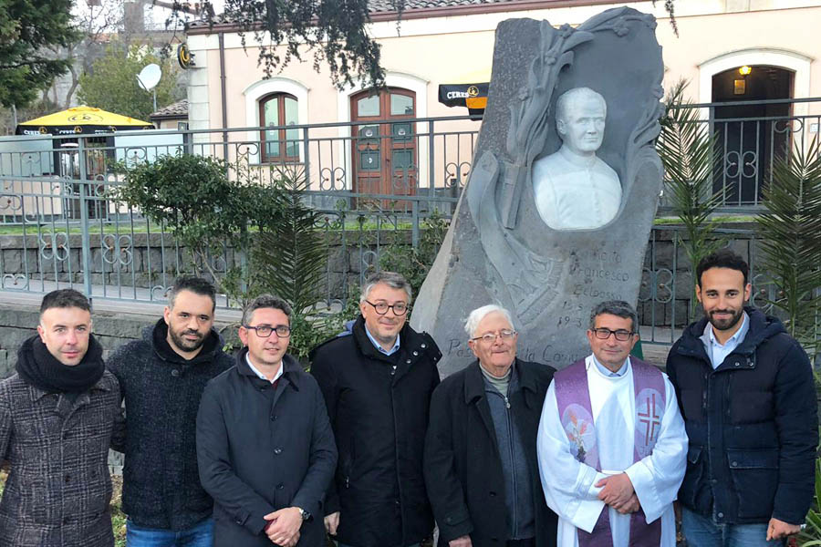 Il ritratto in marmo, incastonato in pietra lavica, è stato realizzato dallo scultore PierManuel Cartalemi, autore anche della statua di Santa Lucia, posta in via Roma e della Madonna delle Grazie, collocata nella piazzetta che fronteggia la chiesa di Sant’Antonio. Alla svelatura della statua, in occasione del 95° anniversario della morte del canonico, hanno presenziato il sindaco Daniele Motta, l’assessore Davide Guglielmino, i consiglieri Carmelo Moschetto e Salvo Rapisarda, don Angelo Lello e lo scultore Pier Manuel Cartalemi.