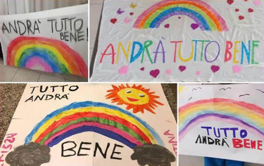 Ogni famiglia è invitata a disegnare un arcobaleno su un cartellone o un lenzuolo con su scritto #andràtuttobene ed esporlo domenica 15 marzo