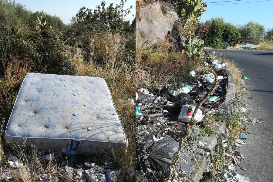 Probabilmente chi svolge la differenziata la fa bene e si spiegano così le alte percentuali, mentre chi non la esegue trova più comodo abbandonare i rifiuti nelle periferie. Il territorio è disseminato da microdiscariche e uno dei luoghi più tormentati è la provinciale 4 nel tratto per Santa Maria di Licodia. Percorrendola in direzione del comune licodiese, in territorio di Belpasso, poco prima della curva a “U” in cui, a una estremità è ubicato un altarino con tre immagini sacre, ai margini della strada è stato abbandonato dall’incivile di turno un materasso.