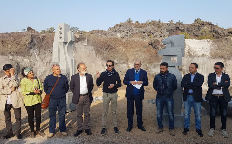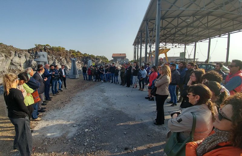 La cerimonia di consegna si è svolta nello stesso laboratorio artistico che nelle ultime due settimane ha ospitato gli scultori all’opera, ovvero l’azienda “Fratelli Grasso Pietra lavica”, lungo la provinciale Belpasso Camporotondo, nella cornice di una cava di pietra che ha fatto da incantevole scenario naturale ai lavori.