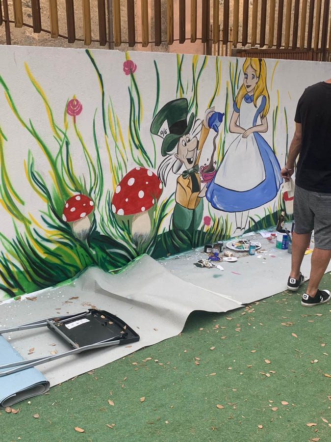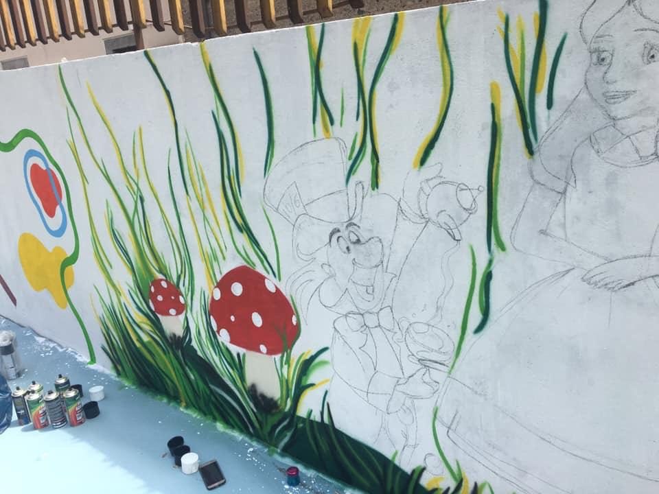 In più sono stati disegnati e poi accuratamente dipinti “Alice nel paese delle meraviglie” insieme al “Cappellaio matto”, il tutto ravvivato da schizzi di colore e dallo slogan con su scritto: “I bambini sono amore diventato visibile.” Presente parte dell’amministrazione comunale capeggiata dal sindaco Daniele Motta con a fianco i consiglieri Fiorella Vadalà, Santi Borzì, Daniela Tomasello ed il vice sindaco Tony Di Mauro. Il primo cittadino Daniele Motta ha aggiunto: «Ringrazio i ragazzi che hanno reso il parco ancora più bello ed accogliente spendendosi per i bambini gratuitamente. Ci vorrebbero più cittadini come loro».