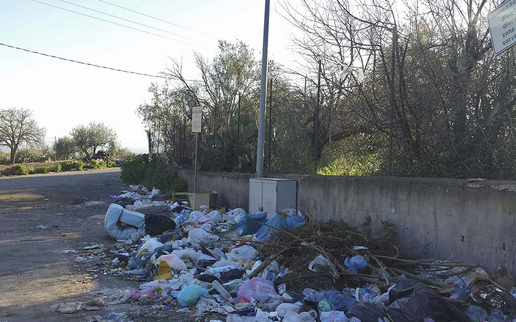 La piazzola posta all’incrocio fra la Strada Comunale Perrieri e via del Trebbiatore (prosecuzione di viale Europa, in direzione Santa Maria di Licodia) a Biancavilla, non trova “respiro” dai rifiuti abbandonati. Attualmente ci sono anche due materassi e una sedia, insieme ai tanti sacchi di immondizia lasciati al margine della strada che insiste nell’area sud-est del comune. Il luogo, appena ripulito dagli addetti, torna subito “occupato” dai rifiuti.