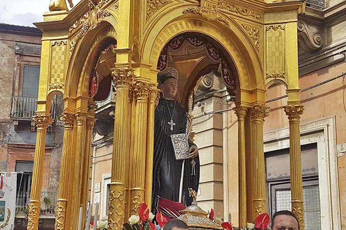 Si avviano oggi alla conclusione le festività patronali a Biancavilla, che come ogni anno fanno riversare per le vie cittadine centinaia di abitanti provenienti anche dai centri limitrofi, attratti non solo dagli eventi liturgici ma anche dai momenti di spettacolo promossi dal Comune. Questa sera, ultimo bagno di folla per il simulacro – con le relative reliquie – del santo protettore Placido, che dalle 20:30 potrà essere riabbracciato dai fedeli nel tradizionale “Giro dei Santi”. Già ieri, sotto una leggera pioggerellina, le reliquie ed il fercolo dell’Abate Benedettino Martire avevano attraversato la città, nella tradizionale uscita di mezzogiorno. All’arrivo del fercolo in piazza Collegiata, sarà proiettato un breve video sulla vita del Santo Martire e il rientro in Basilica sarà preceduto dal tradizionale spettacolo piromusicale e dall’innovativo spettacolo di luci e musiche con le luminarie artistiche..