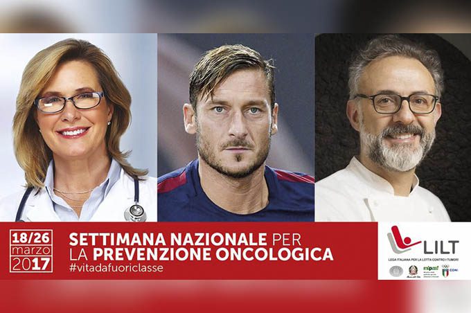 I testimonial della campagna 2017 sono i “Fuoriclasse della Prevenzione”: il capitano della Roma Francesco Totti e lo chef Massimo Bottura, titolare del ristorante “Osteria Francescana” di Modena, primo nella lista “The World’s 50 Best Restaurants Awards 2016”, che hanno offerto gratuitamente la propria immagine ed il proprio impegno per rendere sempre più incisivo il messaggio di benessere psico-fisico.