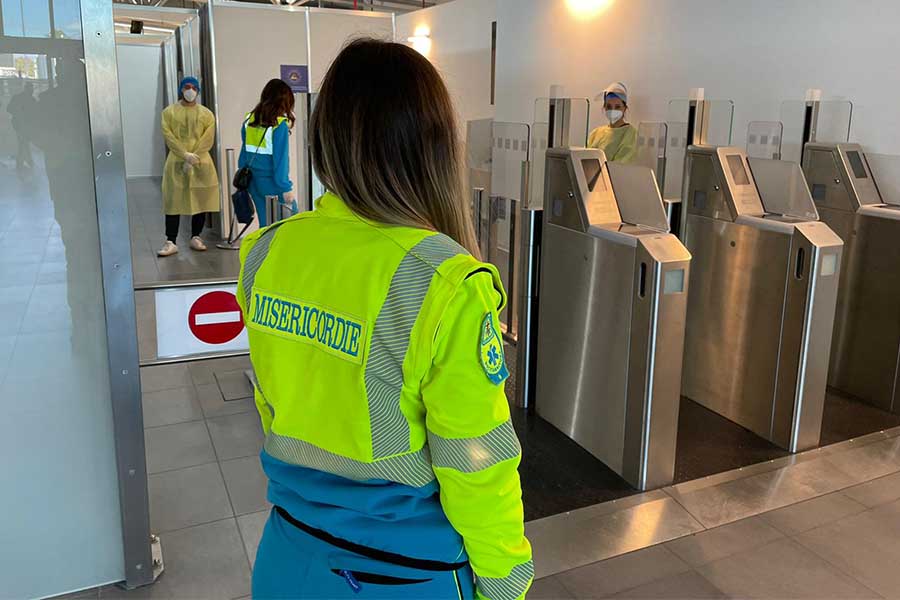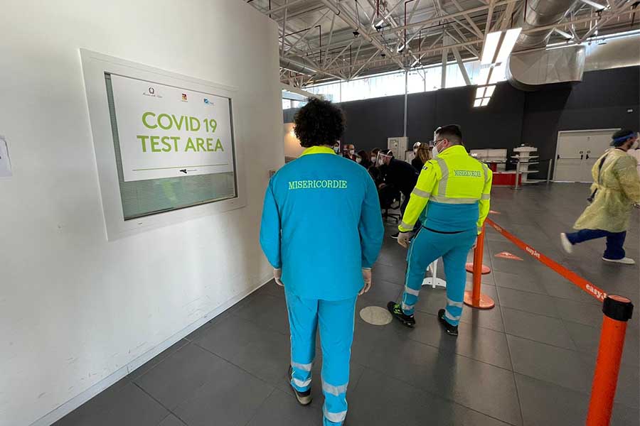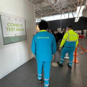 Le giacche “giallo ciano” indirizzeranno i passeggeri che vorranno sottoporsi al tampone rapido