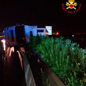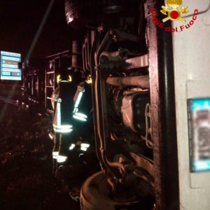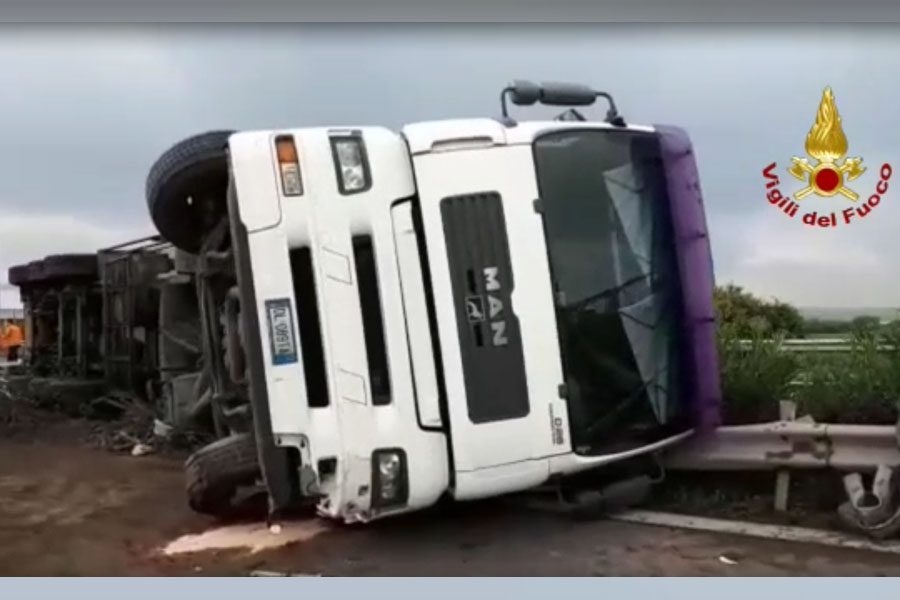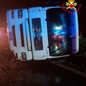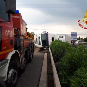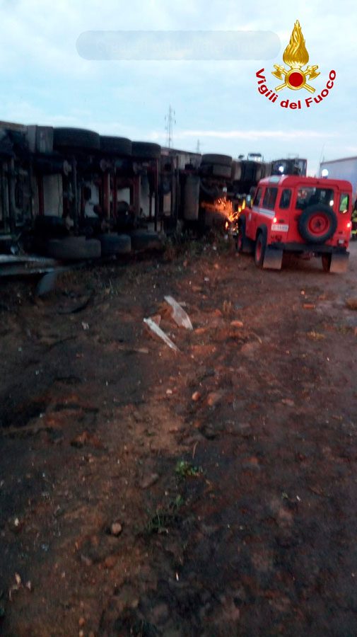 Incidente poco prima delle 3:30 della notte sulla tangenziale di Catania, per un Tir ribaltatosi e rimasto a cavallo fra le due carreggiate all’altezza dello svincolo per l’Asse dei servizi (Bicocca). Il conducente del mezzo pesante è rimasto miracolosamente illeso: è stato, comunque, sottoposto a controllo sanitario sul posto dal personale del 118 intervenuto. Sul posto sono intervenuti i Vigili del Fuoco del Distaccamento Sud del Comando Provinciale di Catania. L’autoarticolato, composto da trattore e cassone a 5 assi, che trasportava generi alimentari, si è ribaltato sulla tangenziale di Catania al 16 km direzione ME, a 300 mt dalla svincolo per l’Asse dei Servizi. I Vigili del Fuoco hanno messo in sicurezza la zona e rimosso parte del guardrail per poi procedere, con un’autogru (dei Vigili del Fuoco) al sollevamento del mezzo che ribaltandosi aveva invaso anche l’altra corsia. Sul posto Anas, Polizia Stradale e Servizio 118.