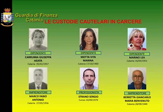 – Vito Enrico Barbuto (55), Roberta Marco (27), Valentina Piera Mazzarino (30), Davide Palmisciano (25), Francesca Sanfilippo (35) quali imprenditori concorrenti nei reati di riciclaggio e partecipi di un’associazione a delinquere finalizzata al riciclaggio;