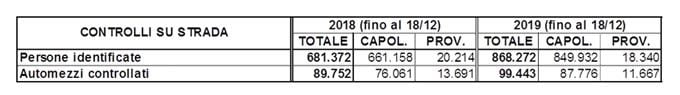Principali dati statistici dell’attività operativa della Polizia di Stato nel corso del 2019