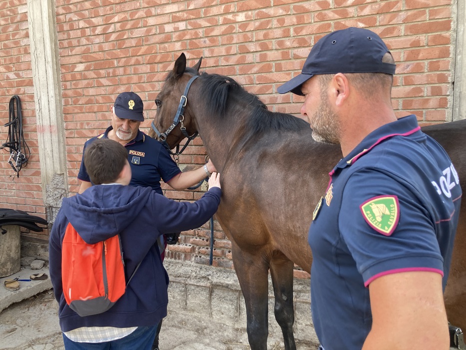 Tema della giornata è senza dubbio la legalità. Nel corso dell’incontro gli agenti hanno illustrato ai giovani ospiti, che hanno mostrato particolare interesse, in un silenzio emozionante, non solo i compiti affidati alla Squadra a Cavallo e Cinofili ma anche, più in generale, quelli svolti da tutti i poliziotti impegnati quotidianamente per la tutela dei cittadini. L’attenzione dei ragazzi è stata immediatamente catturata dalle piccole dimostrazioni che hanno saputo evidenziare le grandi capacità dei cani e dei cavalli poliziotto. Durante l’incontro hanno anche ricevuto la grande quanto inaspettata sorpresa di conoscere Enzo Paolo, un poni sottratto a pratiche di illegalità e che oggi è la mascotte della Squadra a Cavallo. Incontenibile la loro gioia, dimostrata attraverso le numerose domande e le curiosità rivolte ai poliziotti e le abbondanti porzioni di fieno riservate a Enzo Paolo per la sua merenda.