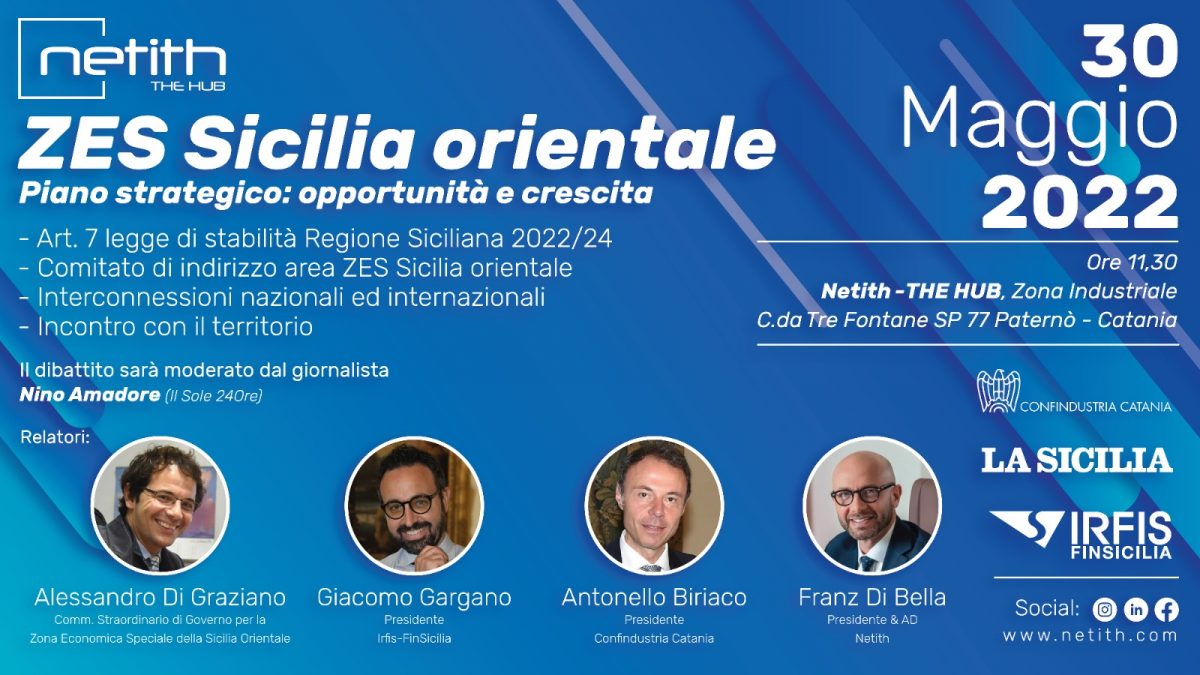 Un nuovo importante appuntamento per il territorio provinciale del catanese per accendere i riflettori su un argomento di grande attualità. Si parlerà di ZES (Zona Economica Speciale), nella convention dal titolo “Zes Sicilia orientale. Piano strategico: opportunità e crescita”, organizzata nella sede dell’azienda Netith a Paternò, in programma lunedì prossimo, 30 maggio, alle ore 11:30.