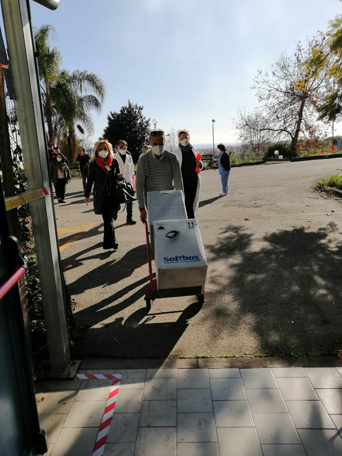 Alle ore 9.00 di questa mattina, scortate dai Carabinieri, sono state consegnate, all’Ospedale “Gravina” di Caltagirone, 7.000 dosi di vaccino contro il Covid-19. Dopo lo stoccaggio, parte della fornitura è stata trasferita all’Ospedale di Giarre, da dove è partita la fornitura iniziale per i Presidi di Acireale, Biancavilla e Paternò. Presente, a tutte le operazioni, il direttore del Dipartimento del Farmaco, dr.ssa Anna D’Agata. La Direzione Aziendale ha costantemente monitorato tutte le fasi – dalla consegna, alla distribuzione, alla vaccinazione degli operatori – consapevole del grande ruolo che avrà l’Asp di Catania nella campagna di vaccinazione sul territorio.