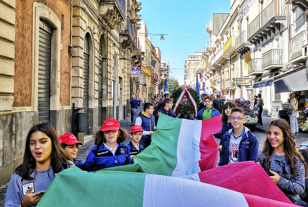 Quattro Novembre, Giornata delle Forze Armate, anche Biancavilla ha celebrato oggi la ricorrenza con una manifestazione che ha coinvolto gli studenti. Un lungo tricolore ha attraversato il centro storico della cittadina per ricordare i Caduti di tutte le guerre, con partenza dal Palazzo comunale. Al corteo hanno partecipato gli alunni delle scuole di diverso grado, i rappresentanti delle autorità civili e militari, le associazioni di volontariato.