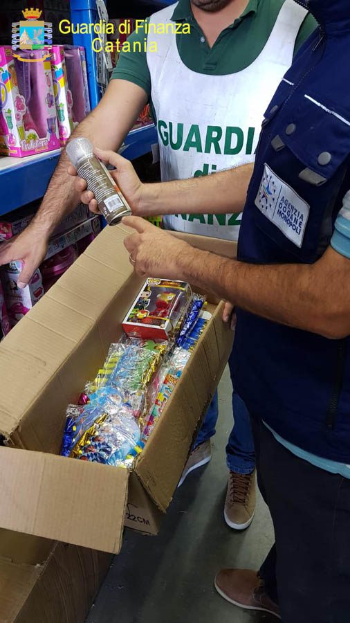 Inviata anche la segnalazione alla locale Camera di Commercio della Sicilia Orientale per vendita di quei prodotti non in linea con le prescrizioni previste dalle norme relative alla sicurezza dei prodotti. L’attività di servizio svolta si inquadra in un più ampio contesto operativo finalizzato alla tutela dei consumatori e degli operatori economici onesti che agiscono lealmente nel rispetto delle regole, importando e commercializzando merci dalle caratteristiche qualitative certificate e rispondenti alle normative nazionali e comunitarie.
