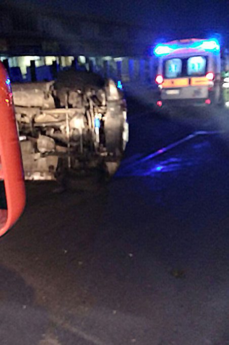 Tamponamento sulla statale 121 in territorio di Piano Tavola, in un tratto ricadente a Misterbianco: auto su un fianco. Anziano rimasto ferito