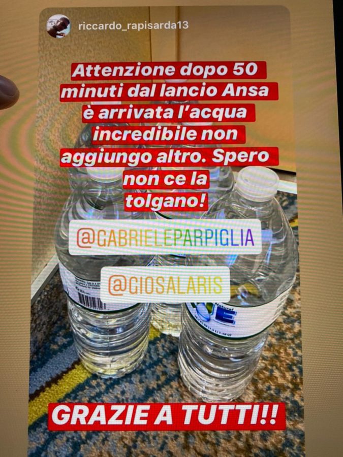 A seguire la vicenda dall’Italia, dal punto di vista legale, c’è l’Avvocato Antonella Minieri, la quale ha consigliato a Riccardo e Giovanna, in via preventiva, di non lasciare per nessun motivo la loro cabina per non esporsi a possibile contagio. Anacronistico, infine, quanto avvenuto pochi minuti fa. Come in una sorta di partita del migliore gioco di strategia, in merito all’approvvigionamento dell’acqua, Gabriele Parpiglia scrive sul proprio profilo Instagram: «Dopo 50 minuti dal comunicato (un lancio Ansa, ndr) ecco che nelle cabine di Riccardo Rapisarda e Giovanna Salaris, sono arrivate 5 bottiglie d’acqua. @royalcaribbean che cos’è una partita a scacchi con le vite ? Console @cristiano_musillo le promesse fatte che fine hanno … fatto? E lo Stato italiano ? La @italymfa ? Liberate i MAFIOSI E LASCIATE I RAGAZZI IN MEZZO AL MARE?!». Nella giornata di oggi, Giovanna ha anche scritto una lettera al console Cristiano Musillo che vi proponiamo integralmente.