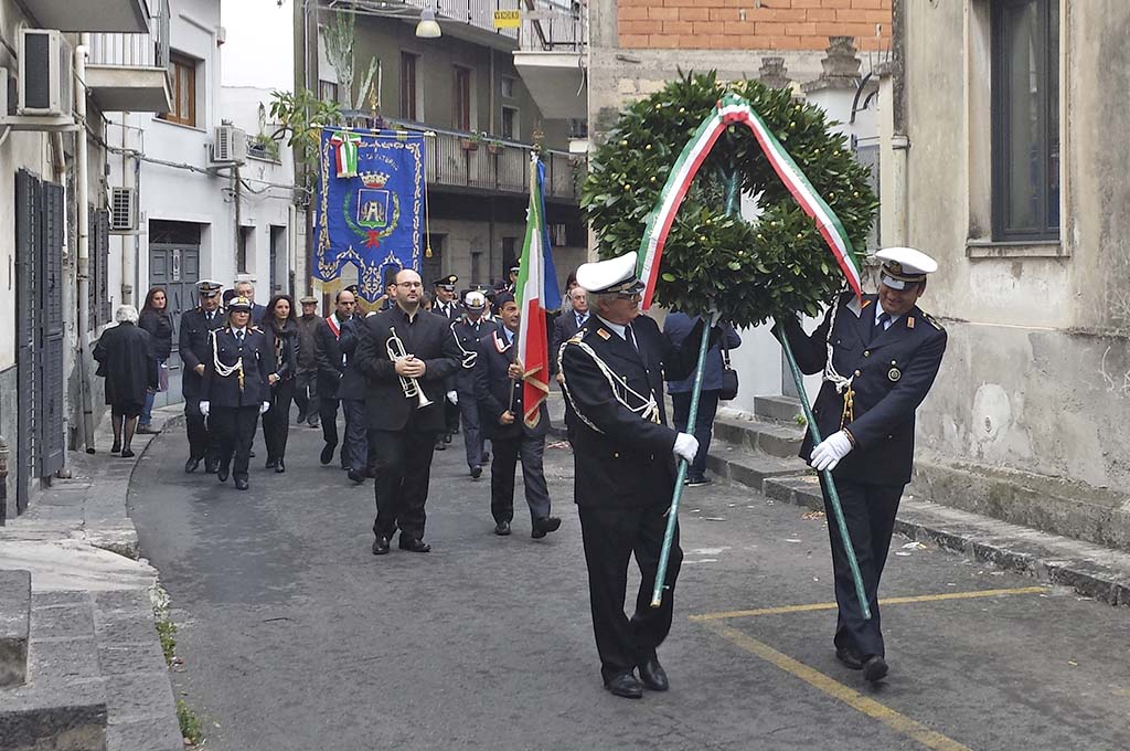 Dopo la celebrazione religiosa il corteo si è spostato, passando per via Emanuele Bellia, in piazza Caduti di Nassiriya, dove, dinanzi alla targa storica, è stata deposta una corona con la fascia tricolore. La piazza è stata intitolata ai militari uccisi il 12 novembre del 2003 in Iraq, durante una missione di assistenza alla popolazione locale dopo la guerra del Golfo. Sull’orgoglio nazionale, sui colori della bandiera, ma soprattutto sulla Costituzione, che rappresenta la carta d’identità dell’Italia, il Sindaco Mauro Mangano ha incentrato il suo intervento, su quella parte della Carta che non verrà modificata, comunque vada il prossimo referendum.