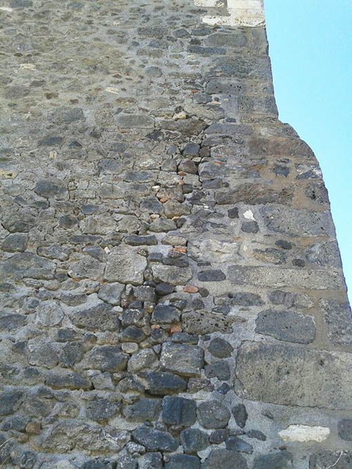 Lo stesso tipo di danno è presente anche nel prospetto ovest del castello, nell’area centrale del muro sotto la grande finestra-loggia che si affaccia sulla Valle del Simeto.