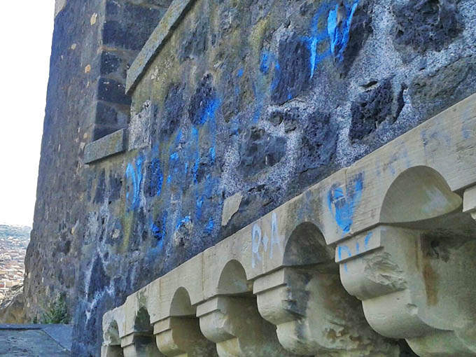 Il Castello normanno di Paternò “chiede aiuto”. Il monumento principe della città, che nel suo esterno versa da anni in condizioni di degrado, presenta adesso l’ennesimo conto. Ai ripetuti e mai risolti atti vandalici, ovvero gli imbratti con vernici lungo i muri esterni dell’edificio, sulla scaletta di accesso, nel portone d’ingresso, e perfino sulle rocce basaltiche su cui sorge, adesso se ne aggiungono altri che mettono a rischio le stesse strutture murarie. Infatti, nella parte bassa dello spigolo del prospetto meridionale, il castello mostra un evidente distacco della malta di coesione lapidea. Il danno sembra essere dovuto all’azione dell’acqua piovana che ha disgregato la malta di riempimento tra le pietre che formano il muro. Allo stato attuale non sembra trattarsi di un danno strutturale vero e proprio, ma di un deterioramento che rischia però di creare delle lesioni e conseguenti cadute di pietre.