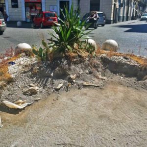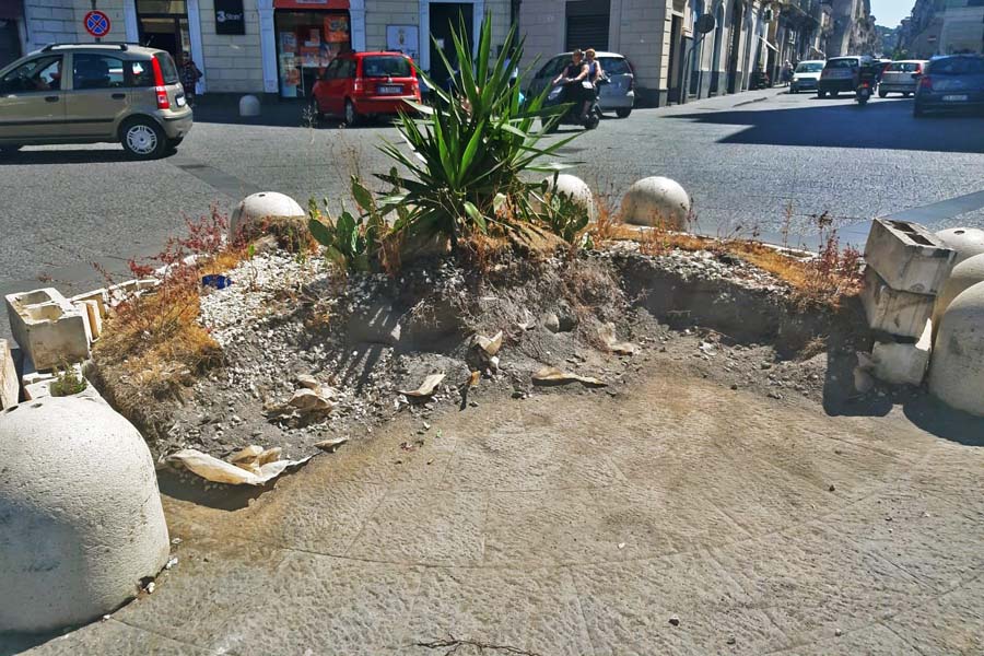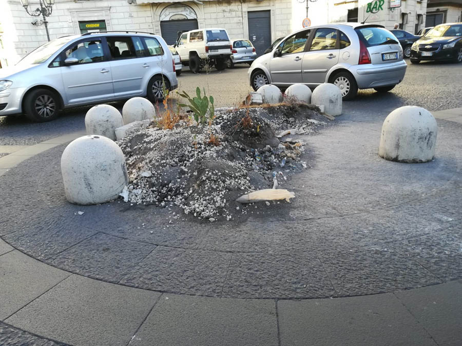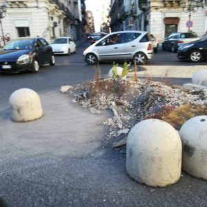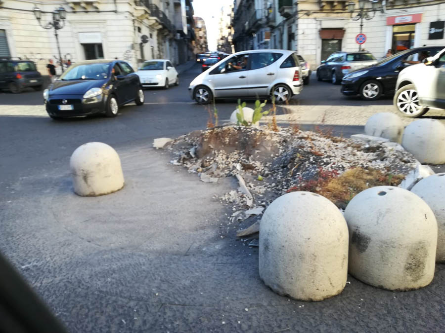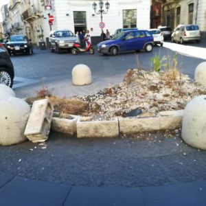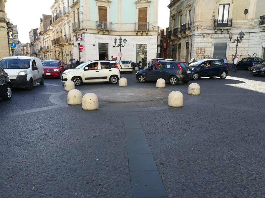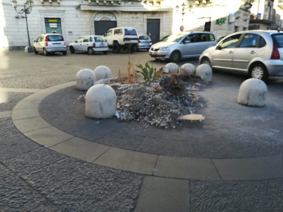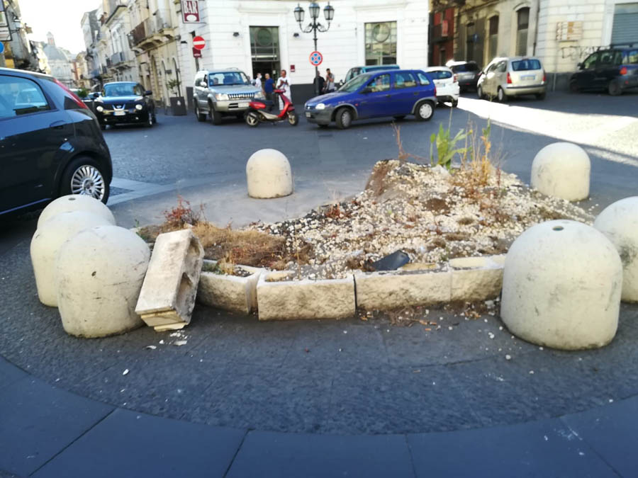 C’era stata una vera e propria sollevazione popolare contro l’obbrobrio che campeggiava al centro di piazza regina Margherita di Paternò, lascito del Natale 2019, consistente in un’aiuola con piante rinsecchite e delimitata da orribili mattoni di cemento. Dopo l’interessamento dei media e la spinta dei social, in questi giorni, finalmente, il centro dei “Quattro Canti” si presenta liberato dall’antiestetico orpello. Rimangono a delimitare il centro della piazza e a disegnare la rotatoria, i dissuasori di sosta e dell’antiestetico rondò restano, per fortuna, solo le foto. Qualcuno si chiede adesso: “E che ci mettiamo?”. Anche niente, piuttosto che scelte di dubbio gusto: d’altronde lo status quo non sarebbe in contraddizione con la storia della piazza e sarebbe in armonia con lo stile architettonico.