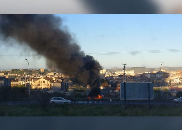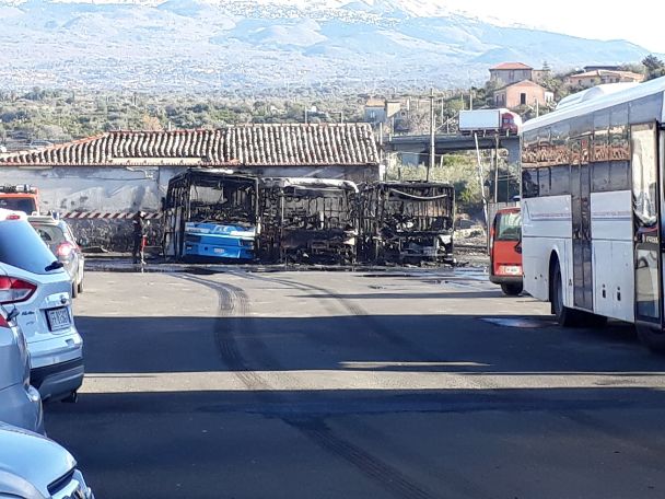 Un incendio di vaste proporzioni si è sviluppato questa mattina, intorno alle 6:30, all’interno del piazzale adibito a deposito mezzi, della stazione della Ferrovia Circumetnea di Paternò, che ha visto il coinvolgimento di 3 autobus della principale compagnia di trasporto extraurbano etnea. Il rogo, che ha sollevato nell’aria una densa nube nera, al momento sembrerebbe essere riconducibile a cause accidentali. Le fiamme si sarebbe infatti sviluppate dall’autobus in sosta al centro rispetto ai tre mezzi andati a fuoco, che era stato messo in moto da qualche minuto, prima che lo stesso partisse per una corsa. Sul posto, sono subito intervenuti gli uomini dei Vigili del Fuoco del distaccamento paternese, con il successivo supporto dei colleghi di Adrano, a seguito di una richiesta di soccorso partita dallo stesso personale dell’Fce. Ad effettuare i rilievi, per accertare le esatte motivazioni del rogo, i Carabinieri della compagnia di Paternò, che hanno seguito anche tutte le operazioni di spegnimento. Le corse della mattinata, si sono svolte regolarmente, riportando solamente qualche minuto di ritardo.