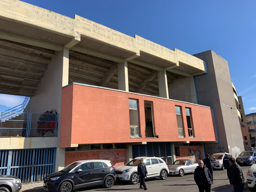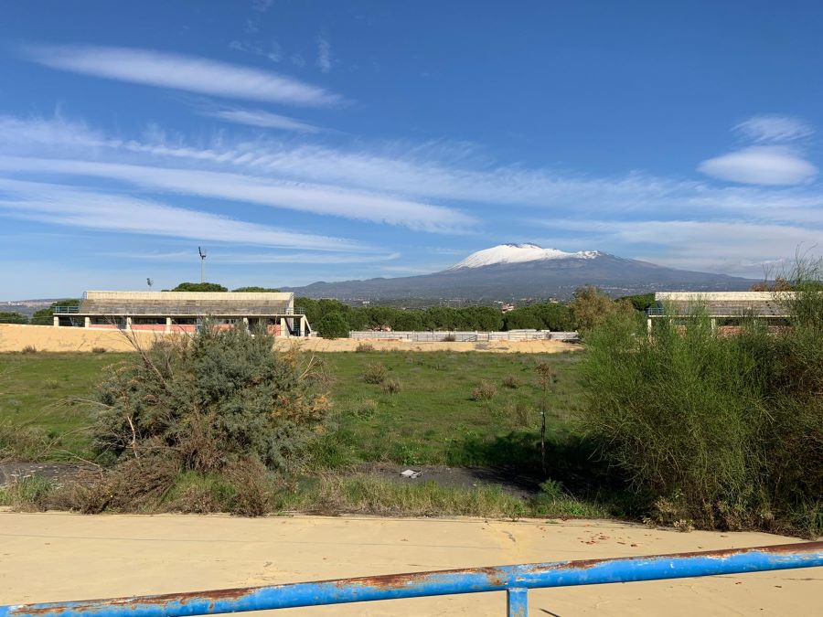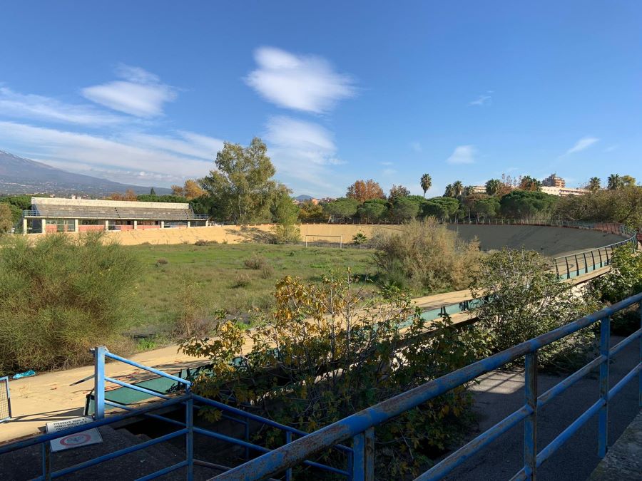 Dopo la presentazione dell progetto da destinare al recupero dell’area delle “Salinelle”, il Governatore della Sicilia Nello Musumeci ha visitato, sempre questa mattina, la struttura del Velodromo di Paternò, che ormai da oltre un quindicennio versa in uno stato di totale abbandono, saccheggiato e distrutto in ogni sua parte. Una forte amarezza, quella mostrata dal presidente Musumeci, nel vedere una struttura da lui riqualificata quando era alla guida della Provincia Regionale di Catania, che oggi di fatto risulta inutilizzabile. Incursioni e vandalismo la fanno da padroni, occupando spesso le pagine di cronaca locale, senza che nessuno riesca a portare avanti azioni concrete di recupero e di salvaguardia.