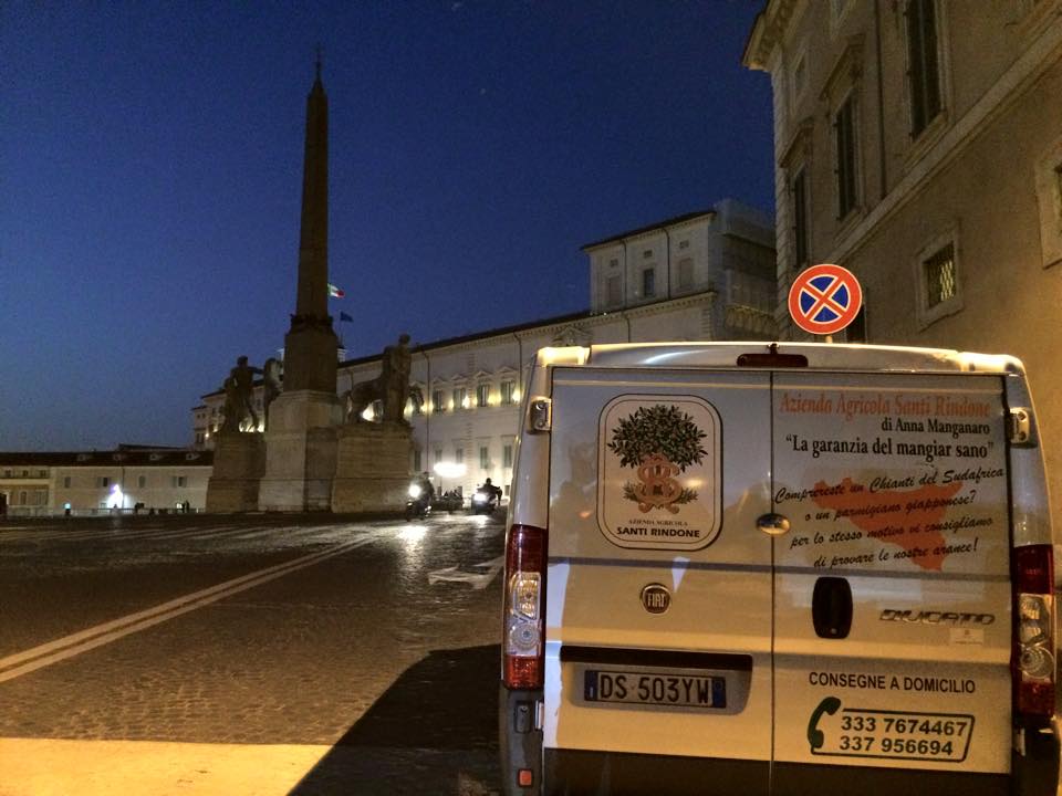 Nel giro di due mesi ho comprato un furgoncino e l’ho personalizzato applicando 3 grandi adesivi rappresentanti la Sicilia con su scritto “comprereste un Chianti del Sudafrica o un parmigiano giapponese ? Per lo stesso motivo vi consigliamo di provare le nostre arance!” frase scritta da papà più di vent’anni fa quando “stretto dalla morsa dei commercianti” e dal loro gioco sporco nei confronti dei produttori ha iniziato la commercializzazione del nostro prodotto.