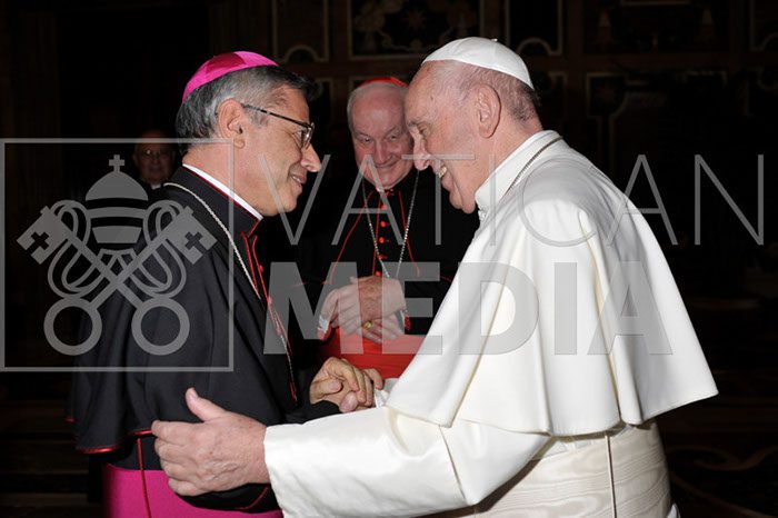 L’ex rettore del seminario di Catania ed attuale vescovo di Lamezia Terme, l’adranita mons. Giuseppe Schillaci, ha incontrato Papa Francesco a conclusione di un corso di formazione che si è tenuto in Vaticano lo scorso giovedì sul tema “Pastori di una chiesa sinodale” rivolta proprio ai nuovi vescovi. Le immagini del Centro Vaticano immortalano proprio il momento dell’incontro tra il Vescovo lametino e sua santità Francesco dopo il discorso che lo stesso pontefice che ha tenuto di fronte all’assemblea di vescovi. Dalle foto traspare un incontro carico di forte emozione e di profonda stima tra i due .