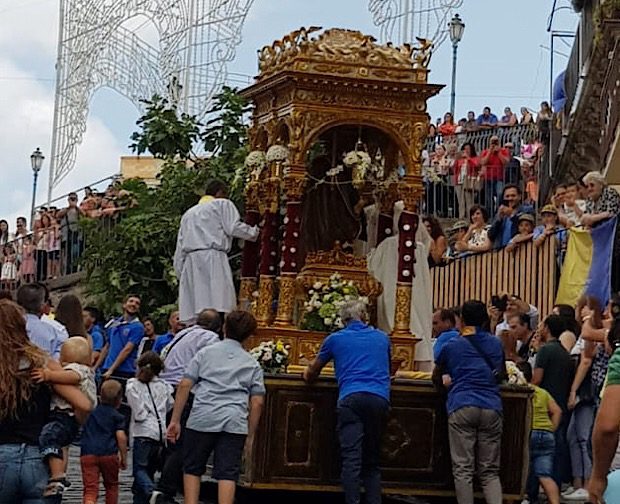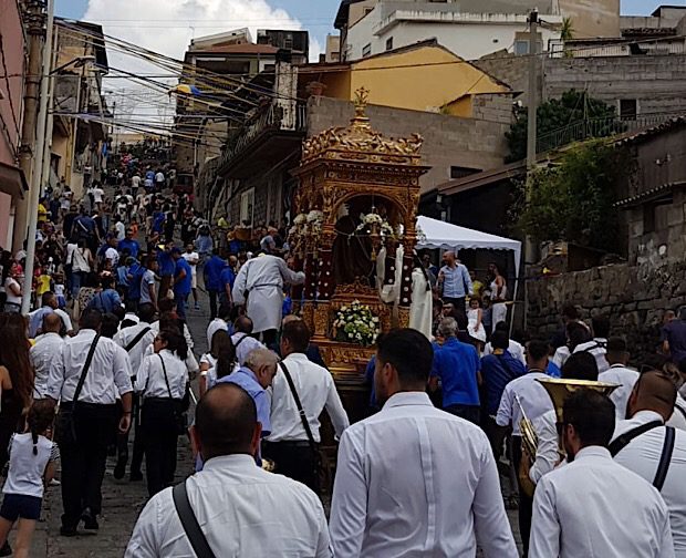 Presente quest’anno anche l’assessore regionale allo sport, turismo e spettacolo Sandro Pappalardo, le cui origini affondano nel paese di Santa Maria di Licodia. «La Regione cerca di essere vicina a tutte le amministrazioni comunali sotto tutti i profili. Non solo sotto il punto di vista delle tradizioni. Cerchiamo di essere vicini con supporti, dove si può, anche economici. Oggi la mia presenza è dettata anche da qualcosa di personale, perché la mia famiglia – papà – proviene da Santa Maria di Licodia e quindi chiaramente mi sento a casa». I festeggiamenti della giornata odierna sono poi continuati con la processione religiosa attraverso il centro storico di Santa Maria di Licodia e la tanto attesa e tradizionale “cchianata de caseddi” con il fercolo in corsa. Partecipata la benedizione dei bambini a piazza Torino. Ad animare la festa, le musiche della banda licodiese “Giovanni Pacini” e i tamburi imperiali di Militello Val di Catania.