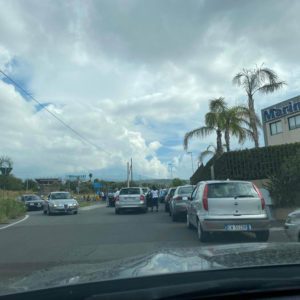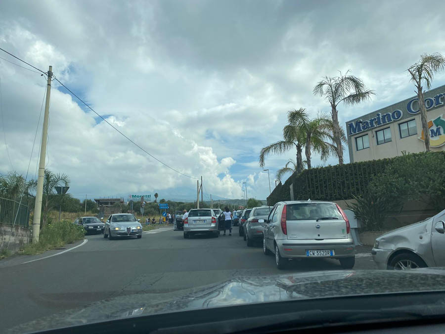 Sulla strada per Ragalna “Acchianata di vigni”. Il percorso sostitutivo, pieno di voragini, causa ingorghi e lamentele