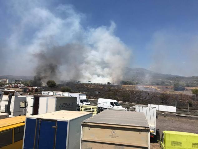Gravissimo incendio, intorno alle 14:00 di oggi, intorno alla zona industriale di Santa Maria di Licodia che si affaccia sulla strada Mancusi Sottana e a ridosso della statale 284. Le fiamme hanno distrutto sei veicoli custoditi all’interno di un rivenditore di autocarri licodiese: auto, camion e camper. L’incendio si è sviluppato inizialmente in un terreno incolto limitrofo alla statale, ricco di sterpaglie secche, per poi propagarsi fino all’interno di un deposito di mezzi destinati alla vendita.