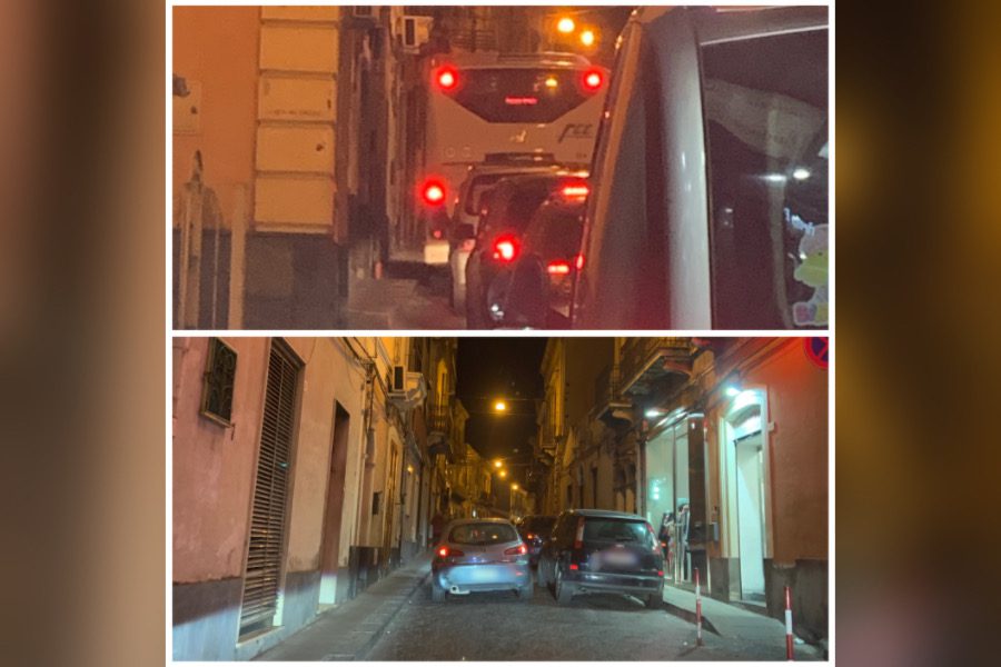 Non accennano a diminuire, a Santa Maria di Licodia, i disagi alla circolazione veicolare legati al non rispetto da parte di tanti, molti, automobilisti che, non curanti del divieto di sosta e fermata presente nel tratto di via Vittorio Emanuele compreso tra via Adelaide Bruno Alessi e via Salvatore Battaglia, preferiscono scegliere la comodità al rispetto delle norme stradali. Ultimo disagio, in ordine cronologico, quello immortalato nella serata di lunedì, intorno alle 20, quando l’ennesimo autobus della Ferrovia Circumetnea è rimasto bloccato per diversi minuti – a causa delle diverse auto in sosta – nel tratto interessato lo scorso anno dal rifacimento dei marciapiedi con l’allargamento degli stessi.