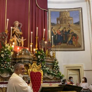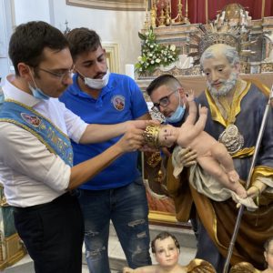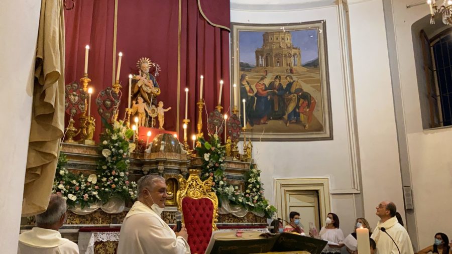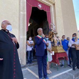 Sono entrati nel vivo nella serata di ieri, sabato 29 agosto, i festeggiamenti in onore del santo patrono di Santa Maria di Licodia “Giuseppe”. A dare il via agli eventi religiosi, seppur vissuti in maniera ridotta e stravolti rispetto alla tradizione – per via delle disposizioni in tema di contenimento della pandemia da Coronavirus – la celebrazione eucaristica introdotta dalla tradizionale sbarrata e presieduta da don Carmelo Giuffrida e concelebrata da don Santino Salamone.
