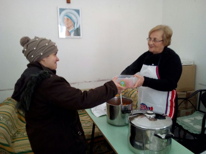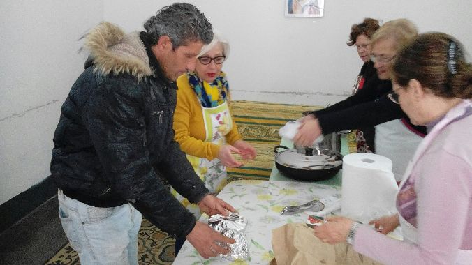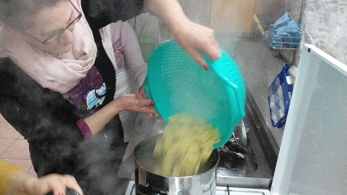 Pasti caldi preparati dalle volontarie dell’associazione “Cavalieri Ospitalieri Onlus” e distribuiti oggi a famiglie e persone sole