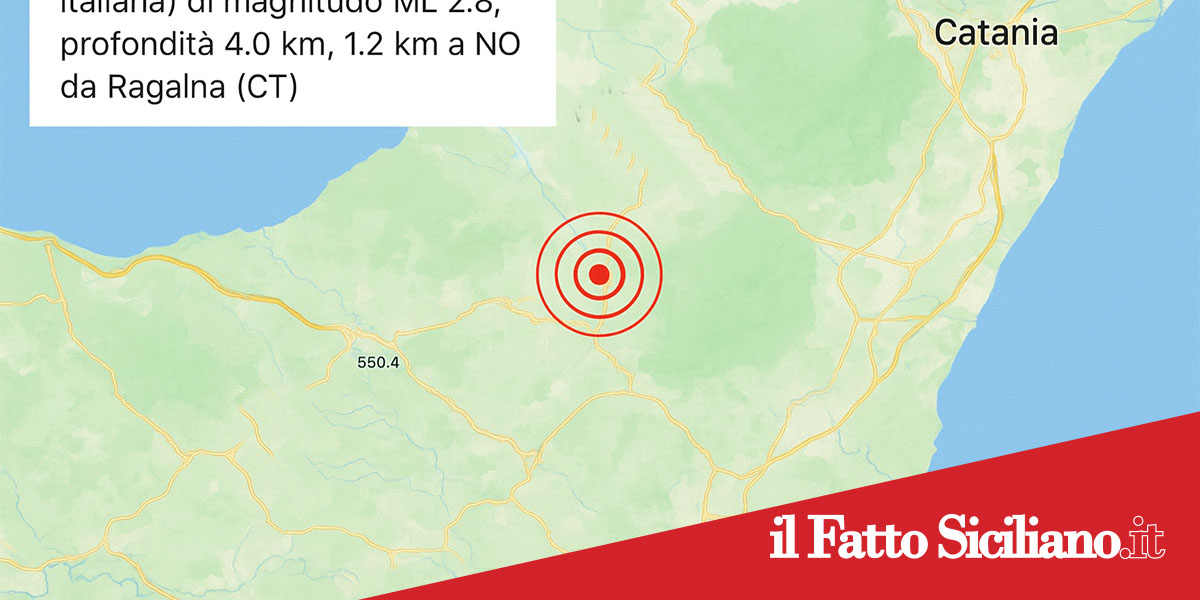 Una scossa di terremoto è stata registrata alle 23:39 di lunedì 27 ottobre 2025 nell’area dell’Etna. L’evento sismico, localizzato a circa 1,2 chilometri a nord-ovest di Ragalna (CT), ha avuto una magnitudo di 2.8 sulla scala Richter e una profondità ipocentrale di circa 4 chilometri.