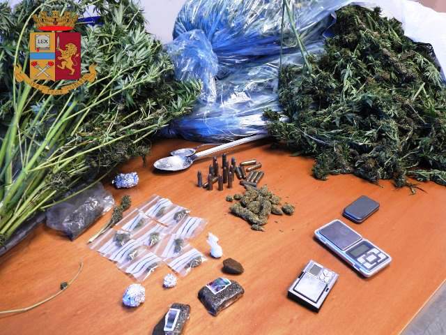 In particolare, a Lentini, nella mattinata di ieri, a seguito di mirata attività info-investigativa, agenti del Commissariato, coordinati dal dirigente Alessandro Sciacca, hanno arrestato un uomo di 35 anni, per i reati di detenzione ai fini dello spaccio di sostanza stupefacente e detenzione abusiva di munizionamento (FOTO). A seguito di perquisizione domiciliare, nell’abitazione dell’arrestato sono stati rinvenuti 3 bilancini di precisione, 1 panetto di hashish (per un peso di 73 grammi), 2 dosi di cocaina, crack contenuto in due cucchiai da cucina utilizzati per la trasformazione della cocaina in crack, 10 dosi di marijuana ed altri 28,5 grammi della stessa sostanza. La perquisizione ha permesso di rinvenire, altresì, 22 munizioni, calibro 38 special, e 6 “pizzini”, indicanti somme e cifre di denaro, riconducibili allo svolgimento dell’attività illecita dello spaccio e la somma di 50 euro, probabile provento di detta attività. Inoltre, una delle stanze posta al piano terra dell’abitazione, era stata adibita a locale di essicazione ed infatti sono state rinvenute al suo interno numerose piantine di marijuana (12,6 kg) ed un termoconvettore portatile utilizzato per regolare il microclima adatto alle operazioni di lavorazione della droga. L’immobile in questione era dotato di un impianto di videosorveglianza. Dopo le formalità di rito, l’uomo è stato posto arresti domiciliari su disposizione dell’Autorità Giudiziaria.