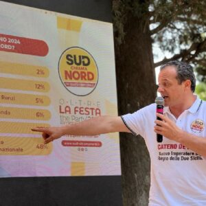 De Luca ha aggregato anime diverse accomunate dalla volontà di rendere i territori protagonisti ed ottenere la vera equità territoriale. E questa volta la sfida è quella delle elezioni europee 2024. Azione, Italia dei Valori, Partito Socialista insieme a realtà locali hanno indicato i punti programmatici per presentarsi preparati alle europee. E i dati del sondaggio letti dall’esperto Nicola Piepoli confermano che “quasi il 50 per cento degli italiani conosce Cateno De Luca e ripone in lui la sua fiducia personale con un 35 per cento”. Ma c’è di più perché “il potenziale di voto che incassa Sud chiama Nord si attesta tra il 5 e il 7 per cento”.