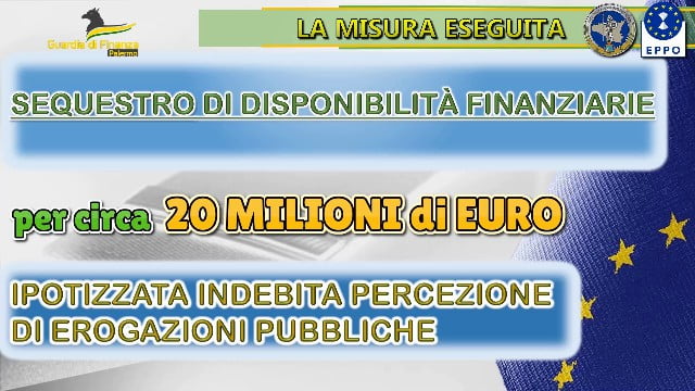 I finanzieri del Comando Provinciale di Palermo hanno dato esecuzione al sequestro preventivo emesso dal G.I.P. del locale Tribunale, su richiesta della Procura Europea (EPPO – European Public Prosecutor’s Office) – Ufficio di Palermo, nei confronti di una società a capitale interamente pubblico e di 3 persone fisiche, per un importo complessivo di circa 20 milioni di euro, anche nella forma per equivalente, quale profitto della condotta delittuosa ipotizzata.