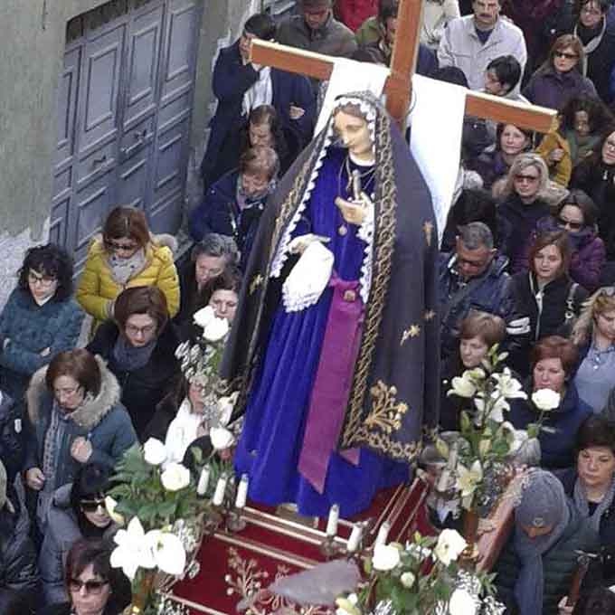 Dopo la processione mattutina della Madonna Addolorata, tutto pronto per la sera dei "Tri Misteri"